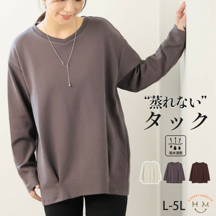 の蒸れ蒸れ汗も快適!前身切替え 裾タック プルオーバー