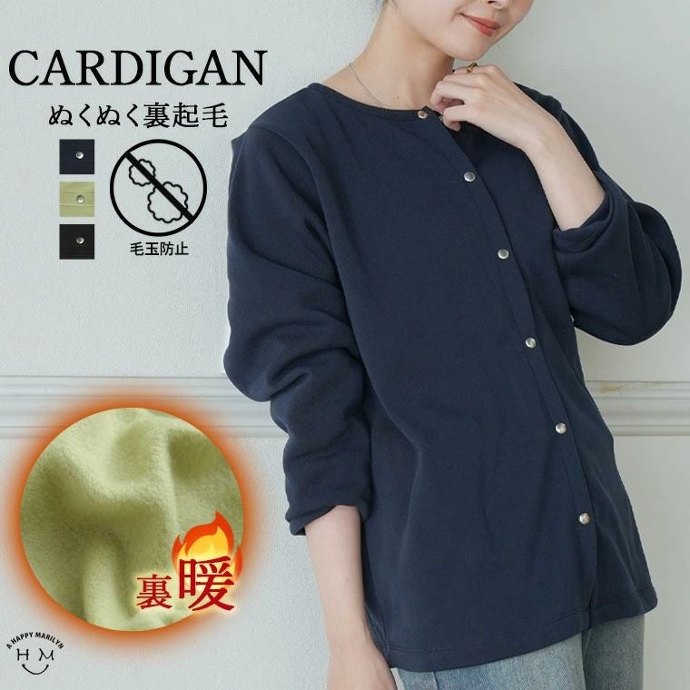 裏起毛スナップボタンカーディガン