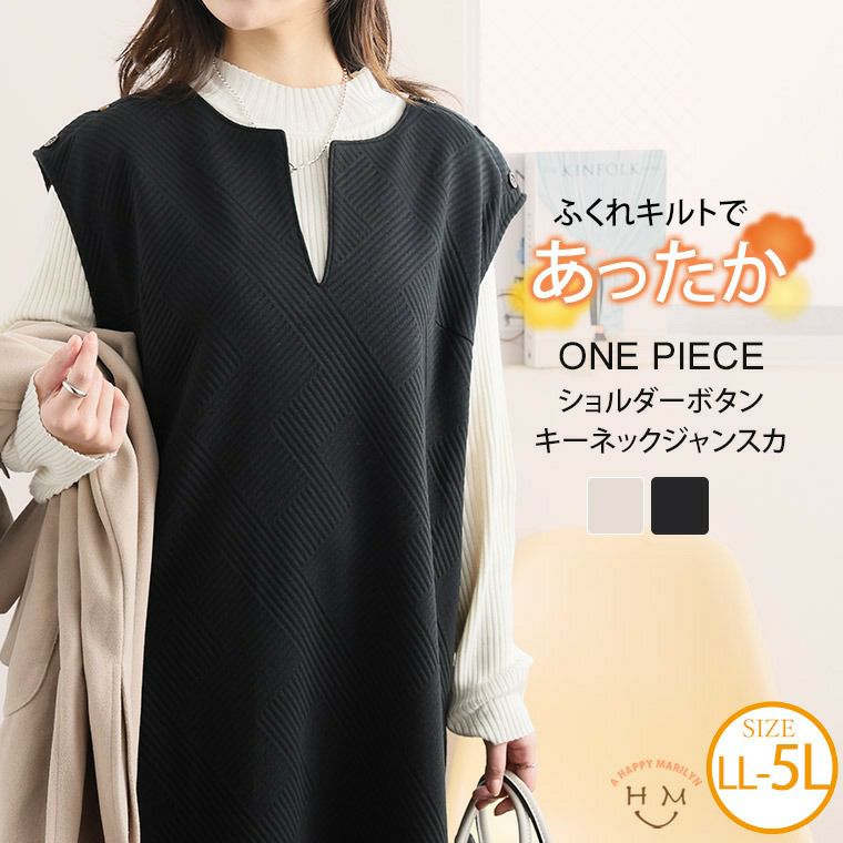 ふんわりキルト素材のキーネックジャンスカ