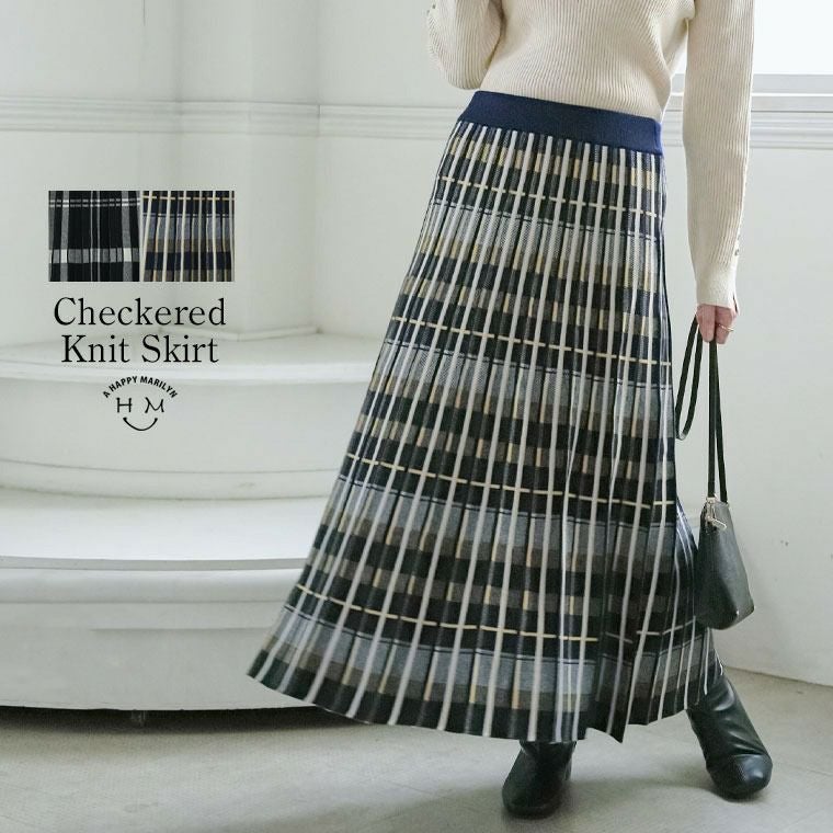 美人に細魅せチェック柄ニットフレアスカート
