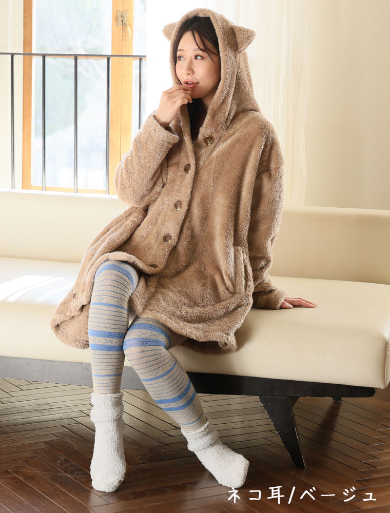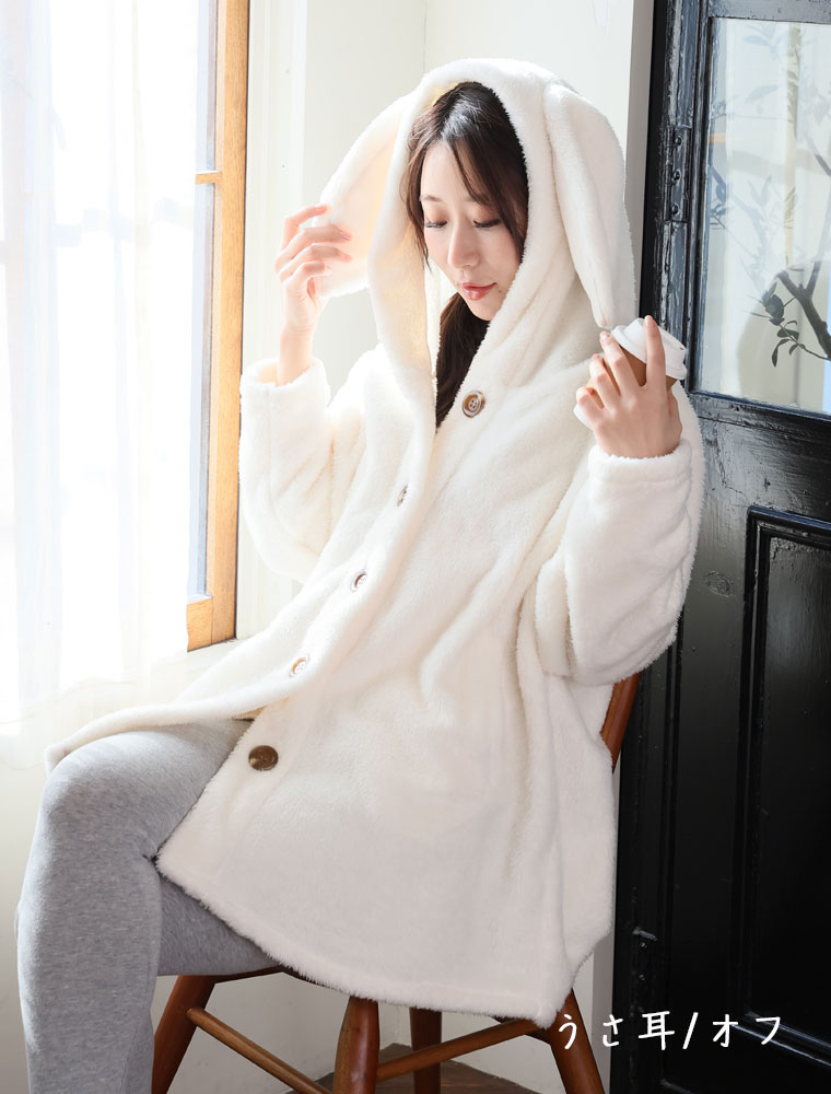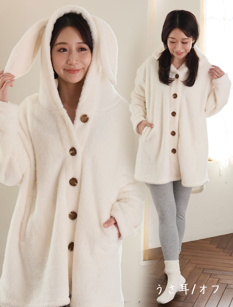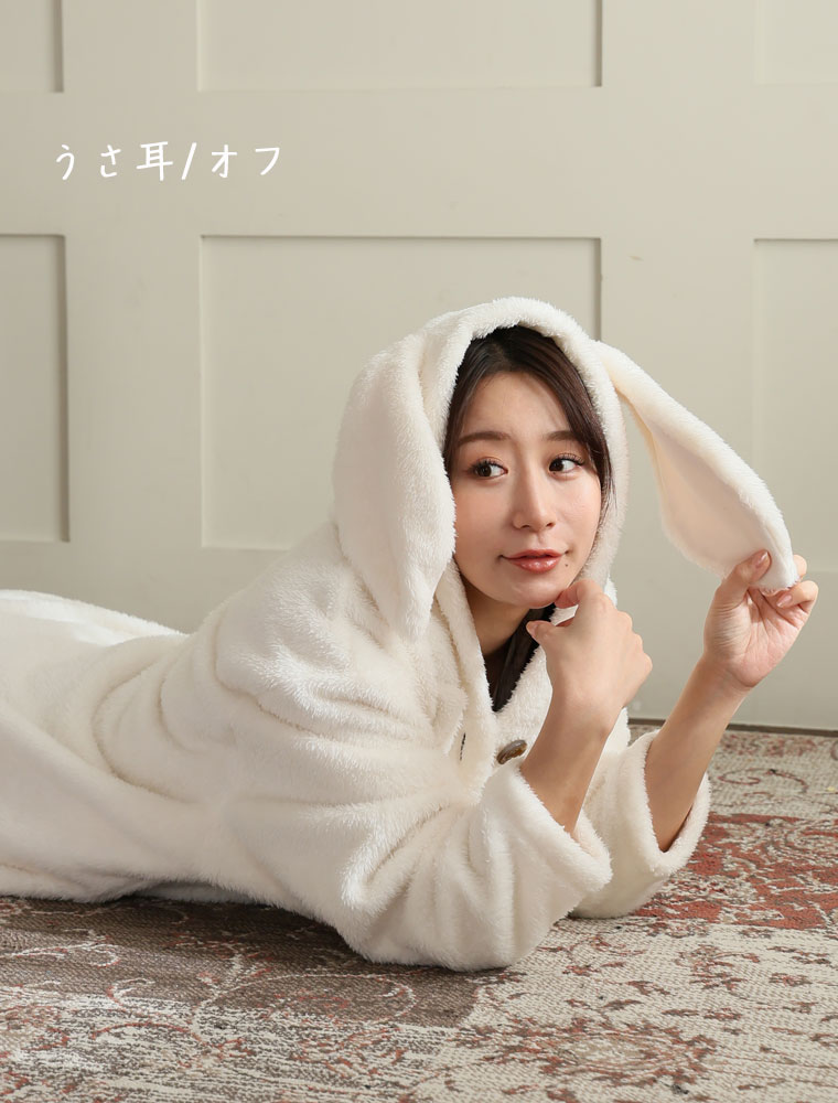 ふわもこ素材の耳付きパジャマ
