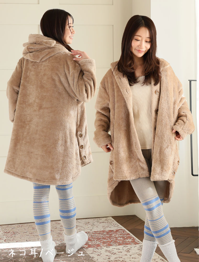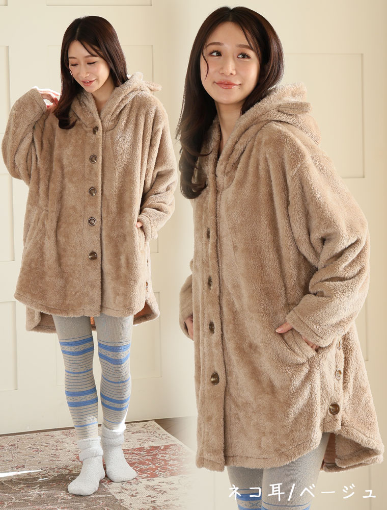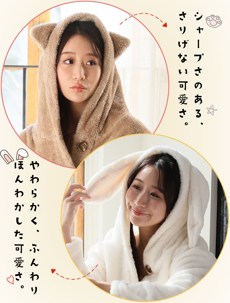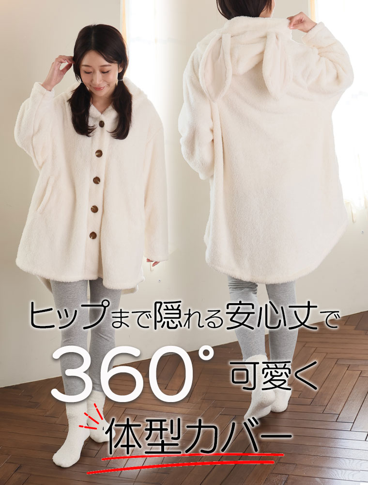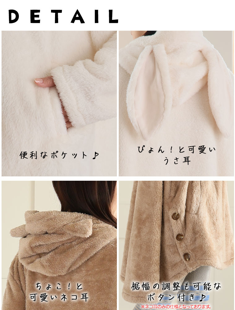 ふわもこ素材の耳付きパジャマ