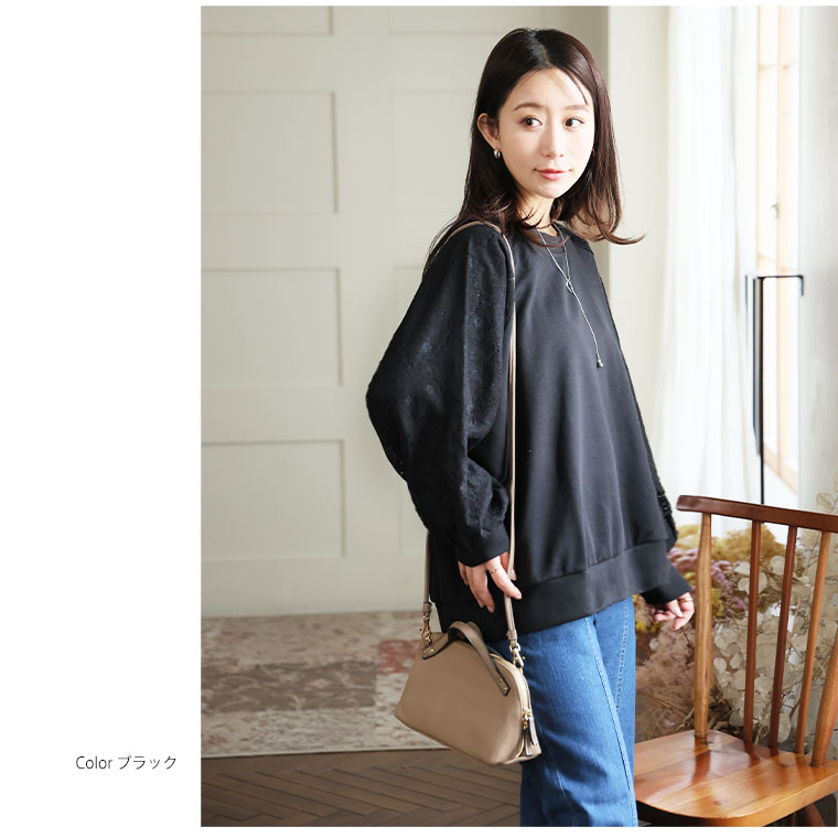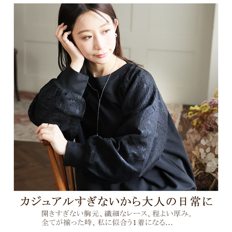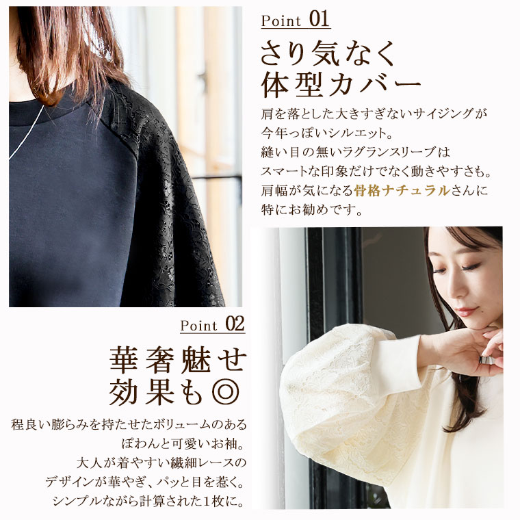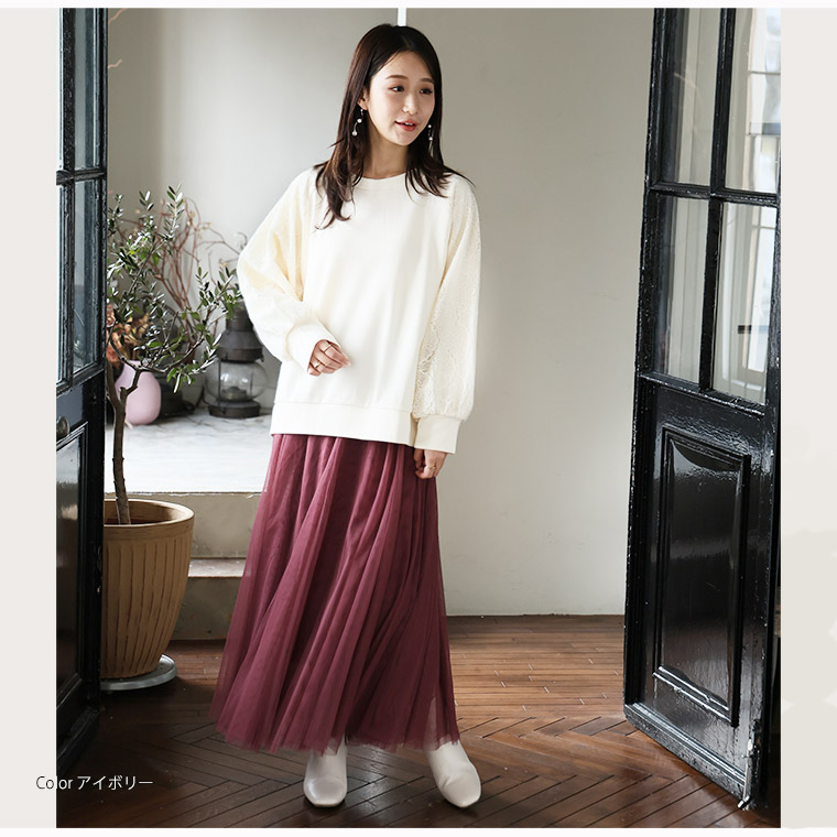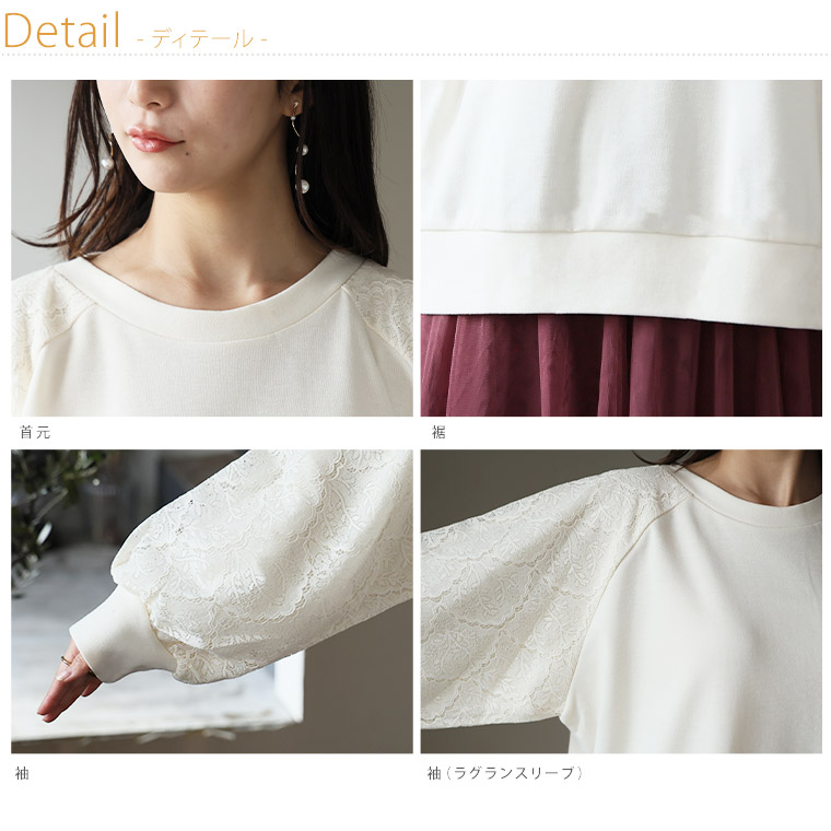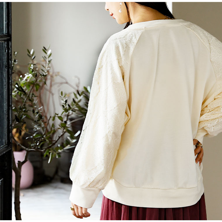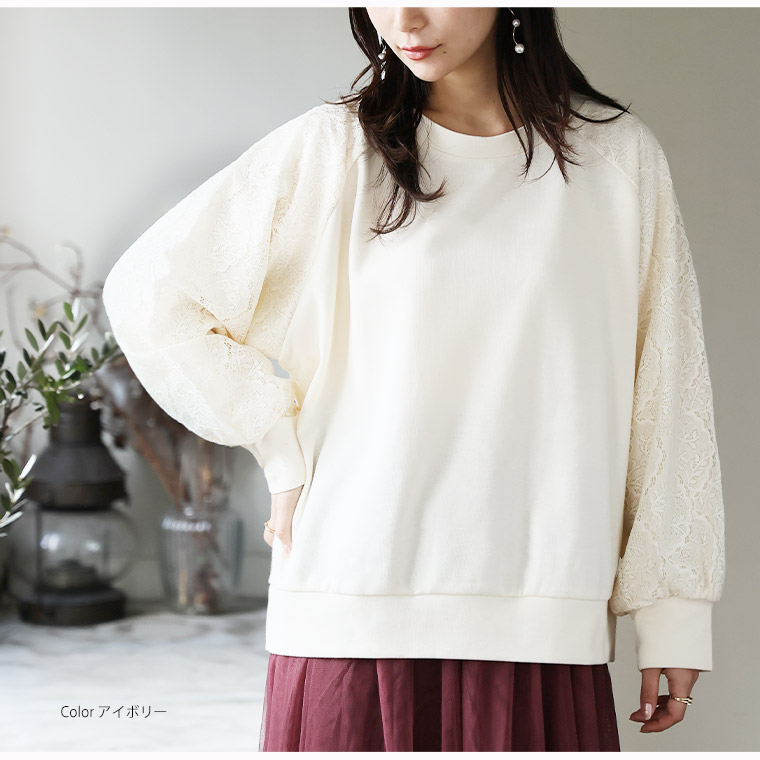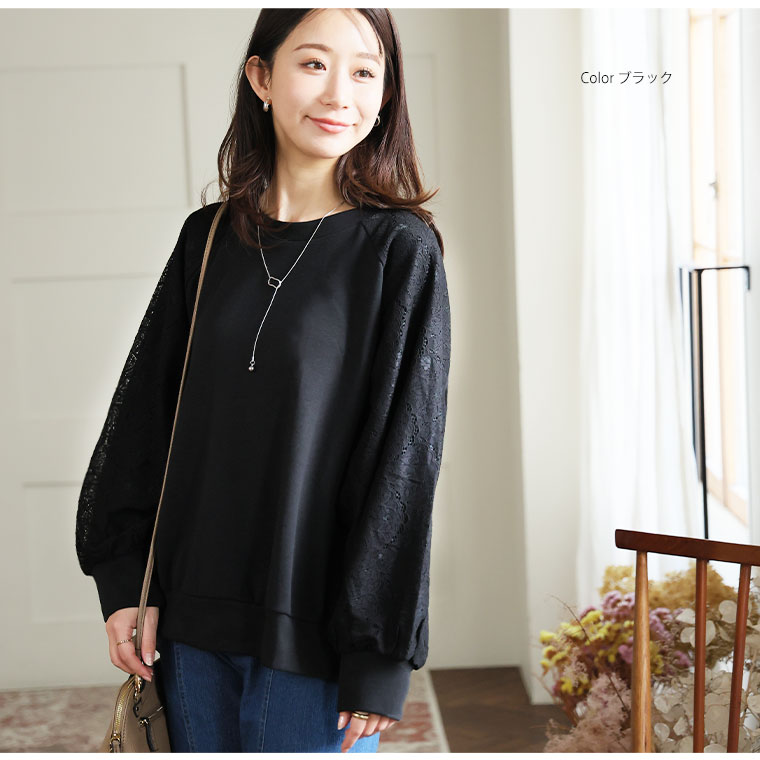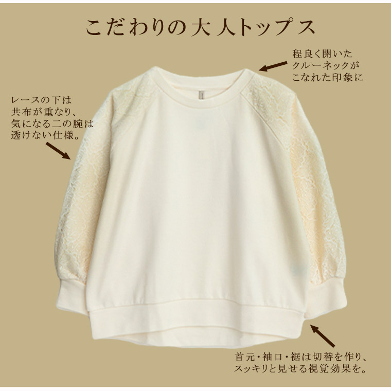 大きいサイズ 【新作◆1月27日販売】 レース切り替え ドルマン プルオーバー 二の腕カバー | 大きいサイズの通販ならハッピーマリリン