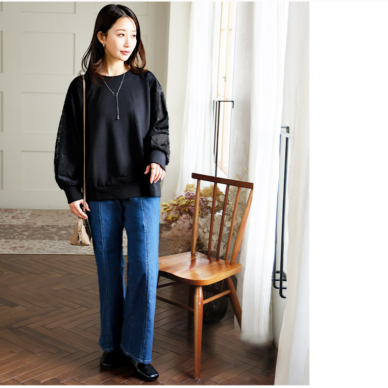 4. 大きいサイズ 【新作◆1月27日販売】 レース切り替え ドルマン プルオーバー 二の腕カバー | 大きいサイズの通販ならハッピーマリリン