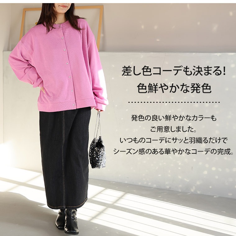 カーデガン 羽織り LL 3L 4L 5L 6L 長袖 春 春物 春服 ぽっちゃり ゆったり プラスサイズ カジュアル かわいい おしゃれ 二の腕カバー スナップボタン ダブルフェイス クルーネック ニット カーデ | 大きいサイズの通販ならハッピーマリリン