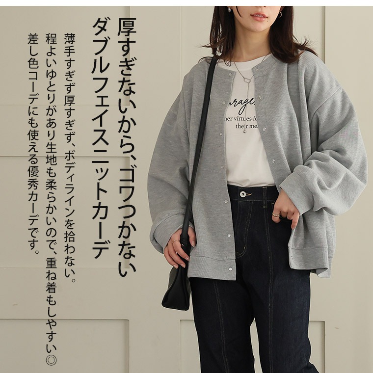 体型を拾いにくいダブルフェイスニットカーデ。