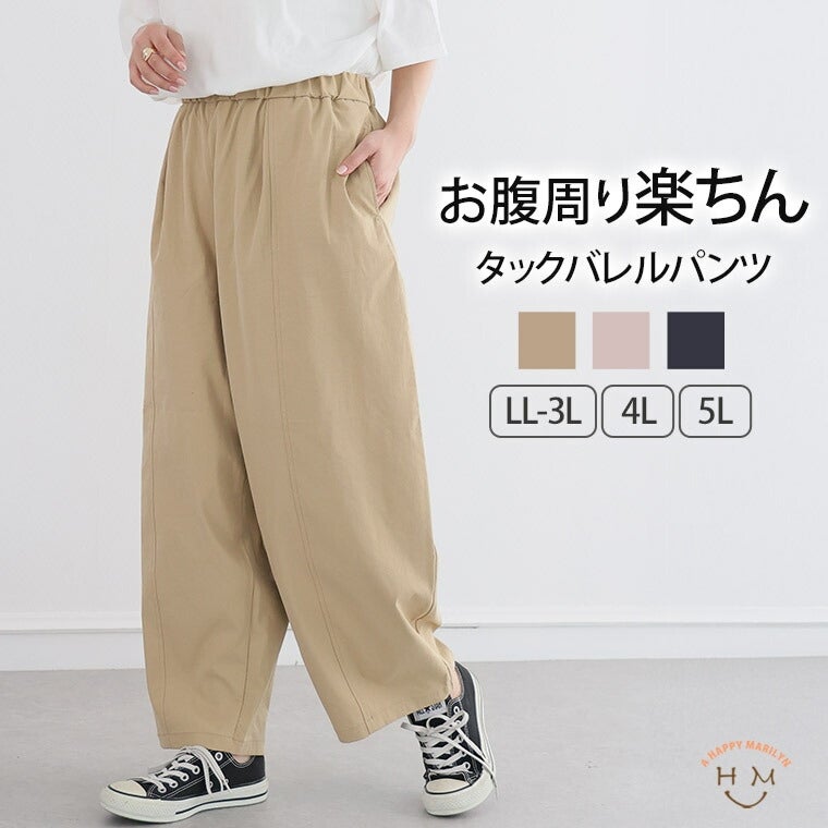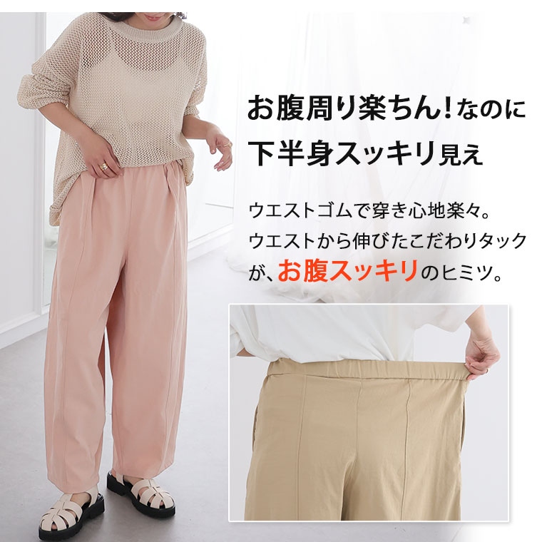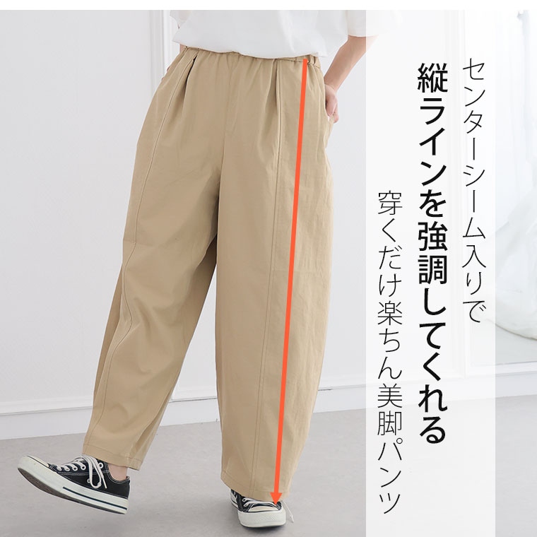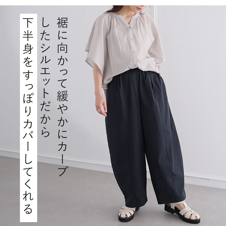 ゆったりなのにスッキリ見えのバレルレッグパンツ