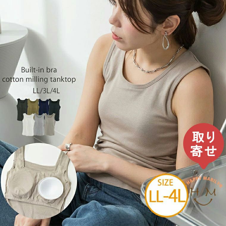 綿混、ノンワイヤーカップ付きシンプルタンクトップ