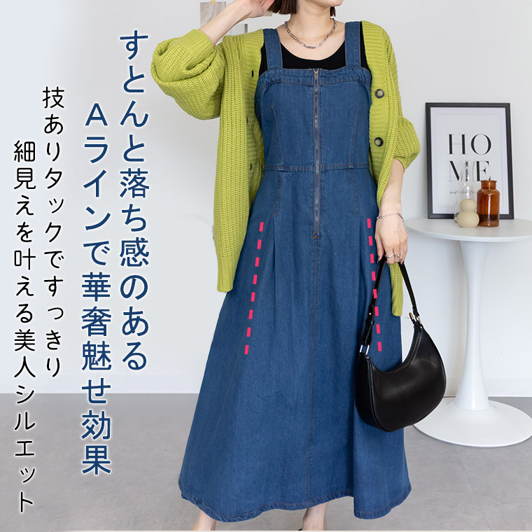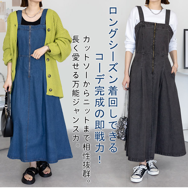 ジャンパースカート ジャンスカ ロング丈 マキシ丈 LL 3L 4L 5L 春 春物 春服 ぽっちゃり ゆったり プラスサイズ カジュアル かわいい おしゃれ ナチュラル 【取】 【新作◆1月25日販売】 フロント Zip ジャンスカ | 大きいサイズの通販ならハッピーマリリン