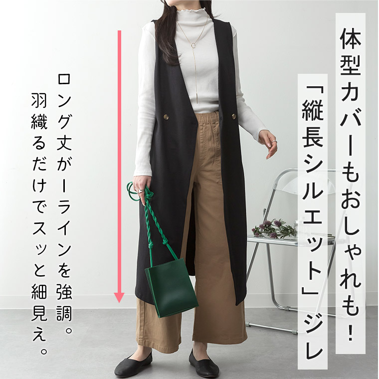 縦長ラインでオシャレにお腹・お尻カバー