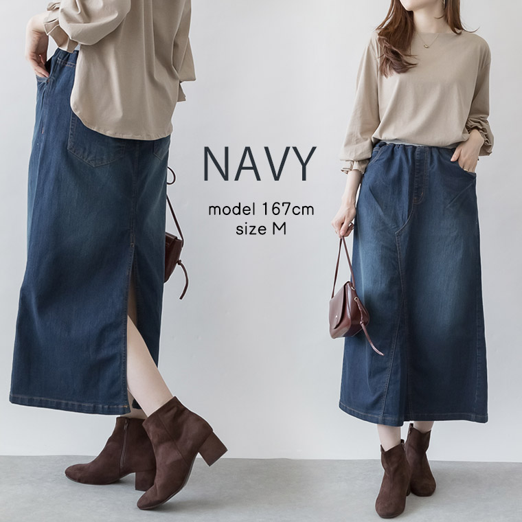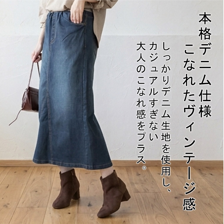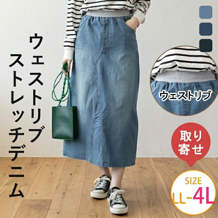 ストレッチで楽ちんウェストリブデニム