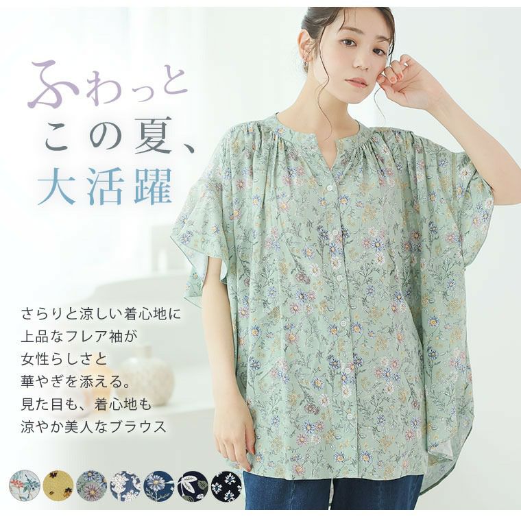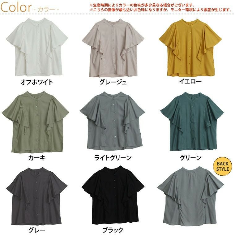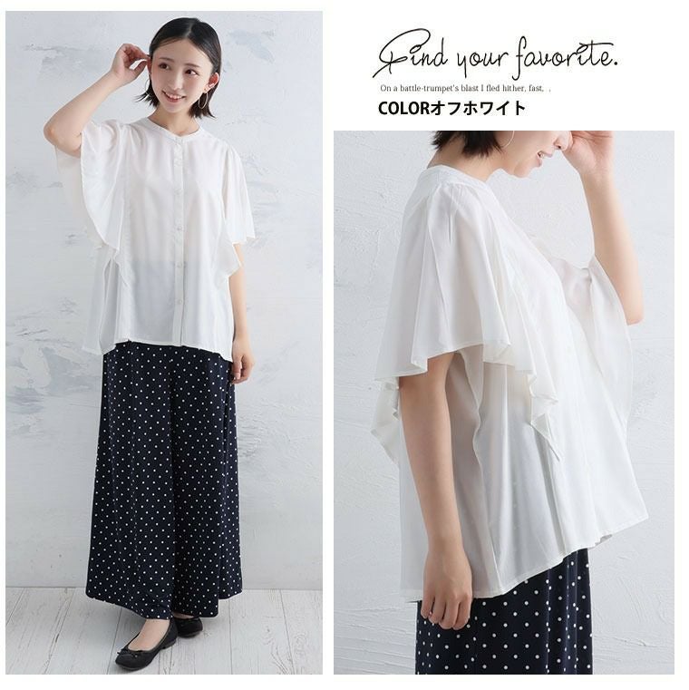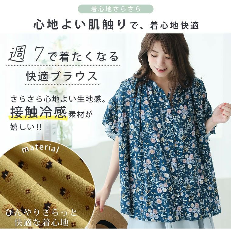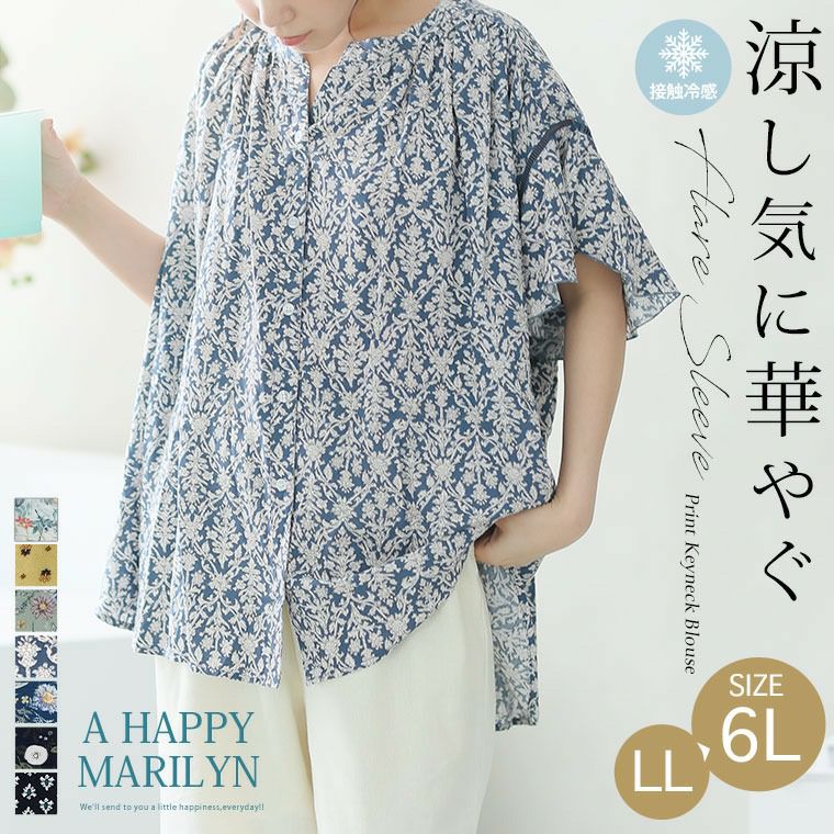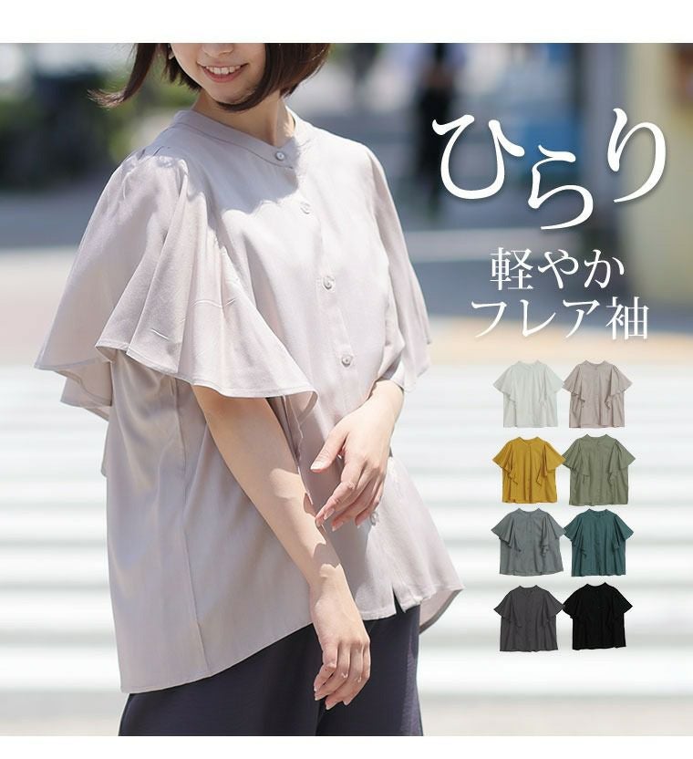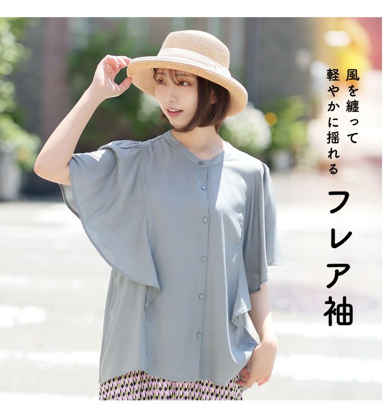 他の画像を見る シャツ トップス LL 3L 4L 5L 6L 半袖 夏 夏物 夏服 夏用 ぽっちゃり ゆったり プラスサイズ 接触冷感 かわいい おしゃれ カジュアル 胸回り 【さらっとタッチ】 フレア袖 バンドカラー ブラウス | 大きいサイズの通販ならハッピーマリリン 価格 ¥ 2,490 税込 3.83 お気に入りに登録する