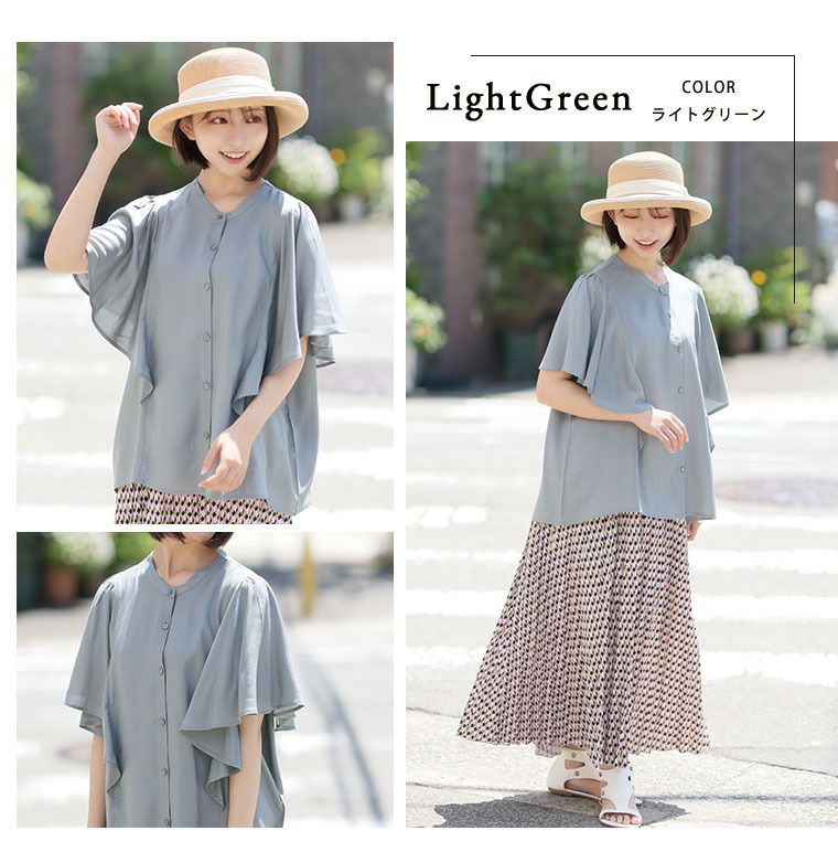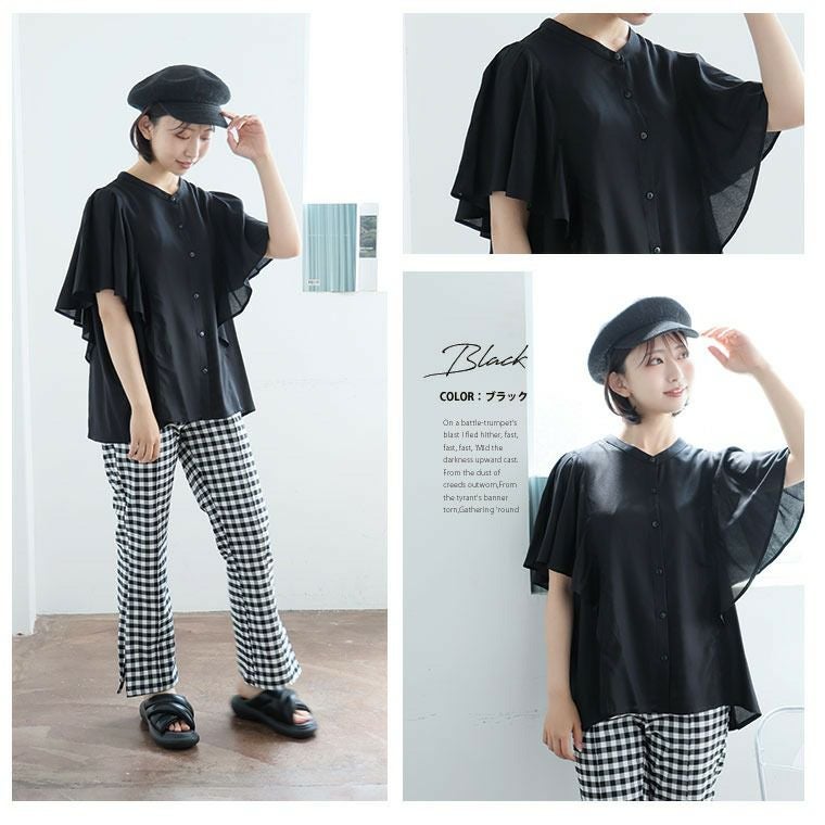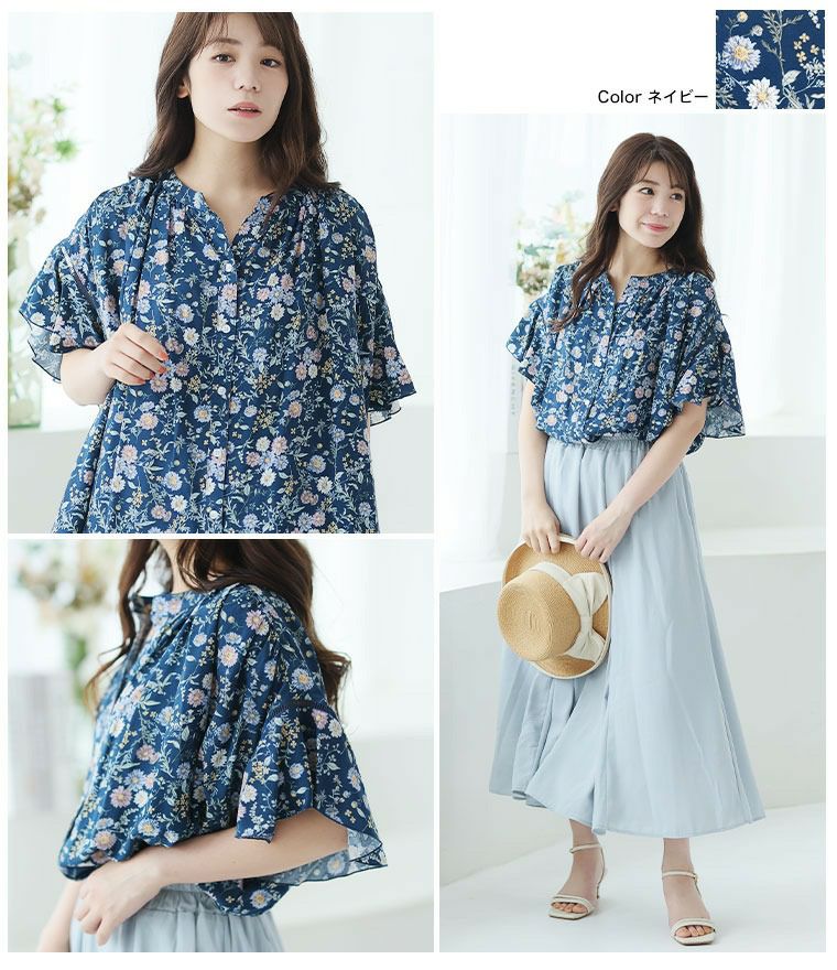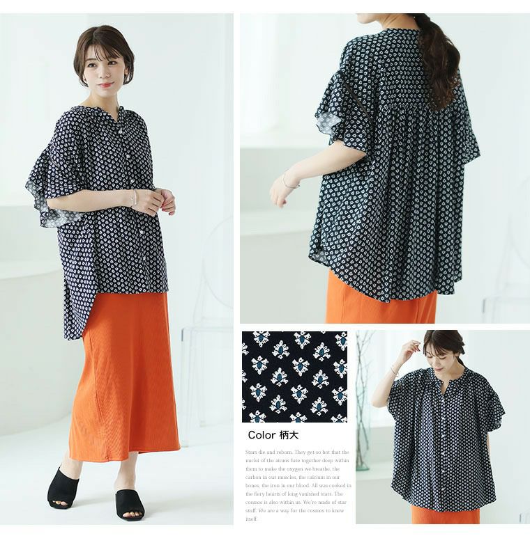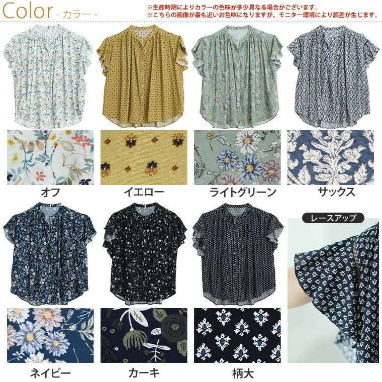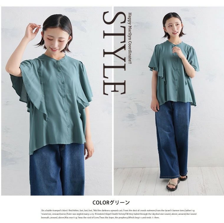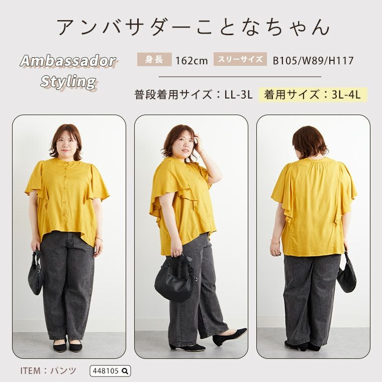 他の画像を見る シャツ トップス LL 3L 4L 5L 6L 半袖 夏 夏物 夏服 夏用 ぽっちゃり ゆったり プラスサイズ 接触冷感 かわいい おしゃれ カジュアル 胸回り 【さらっとタッチ】 フレア袖 バンドカラー ブラウス | 大きいサイズの通販ならハッピーマリリン 価格 ¥ 2,490 税込 3.83 お気に入りに登録する