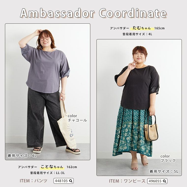 他の画像を見る プルオーバー カットソー LL 3L 4L 5L 6L 半袖 夏 夏物 夏服 夏用 ぽっちゃり ゆったり プラスサイズ リブ ストレッチ リブインナー リブトップス かわいい 袖シアー 配色 トップス | 大きいサイズの通販ならハッピーマリリン 価格 ¥ 2,490 税込 4.20 お気に入りに登録する