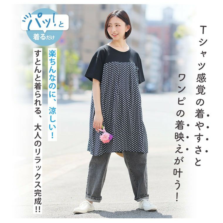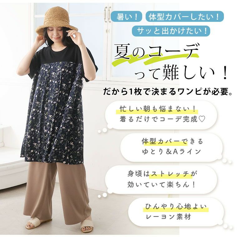 他の画像を見る デザインワンピ LL 3L 4L 5L 6L 半袖 五分袖 夏 夏物 夏服 夏用 ぽっちゃり ゆったり プラスサイズ スラっと楽ちん ひんやり リラックス 美人切替ライン チュニック ワンピ | 大きいサイズの通販ならハッピーマリリン SALE 定価 ¥ 2,990 のところ 価格 ¥ 2,541 税込 3.50 お気に入りに登録する