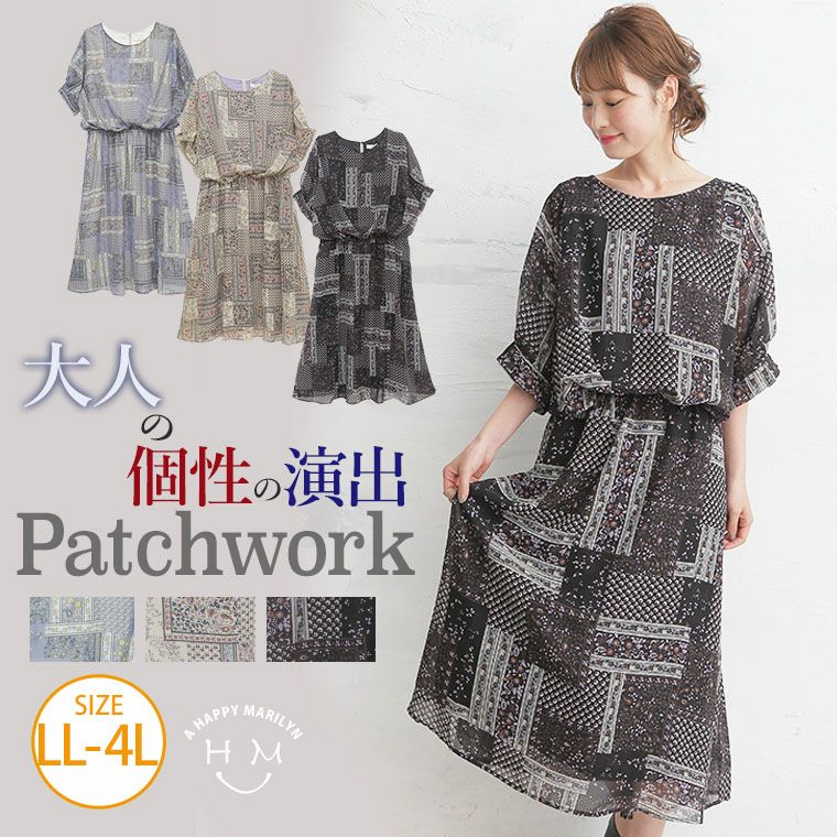 他の画像を見る ワンピ LL 3L 4L 夏 夏物 夏服 夏用 ぽっちゃり ゆったり かわいい おしゃれ カジュアル ナチュラル 可愛い 大人 きれいめ ビッグサイズ パッチワーク風プリント ウエストタック 半袖 ワンピース | 大きいサイズの通販ならハッピーマリリン 価格 ¥ 4,064 税込 在庫切れ お気に入りに登録する