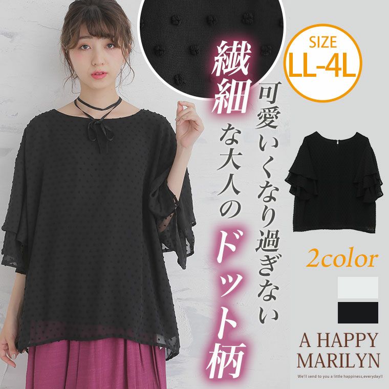 他の画像を見る シャツ トップス LL 3L 4L 夏 夏物 夏服 夏用 ぽっちゃり かわいい おしゃれ ナチュラル カジュアル オシャレ 可愛い 大人 カットドビー 二段 フリル ブラウス | 大きいサイズの通販ならハッピーマリリン 価格 ¥ 2,739 税込 在庫切れ お気に入りに登録する