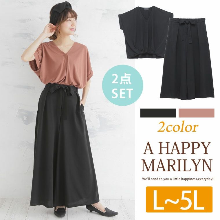 他の画像を見る 上下セット set パンツ LL 3L 4L 5L 夏 夏物 夏服 夏用 ぽっちゃり ゆったり かわいい おしゃれ ドルマンスリーブ 半袖 トップス と 共布リボンベルト付き ワイドパンツ の セットアップ | 大きいサイズの通販ならハッピーマリリン 価格 ¥ 3,298 税込 在庫切れ お気に入りに登録する