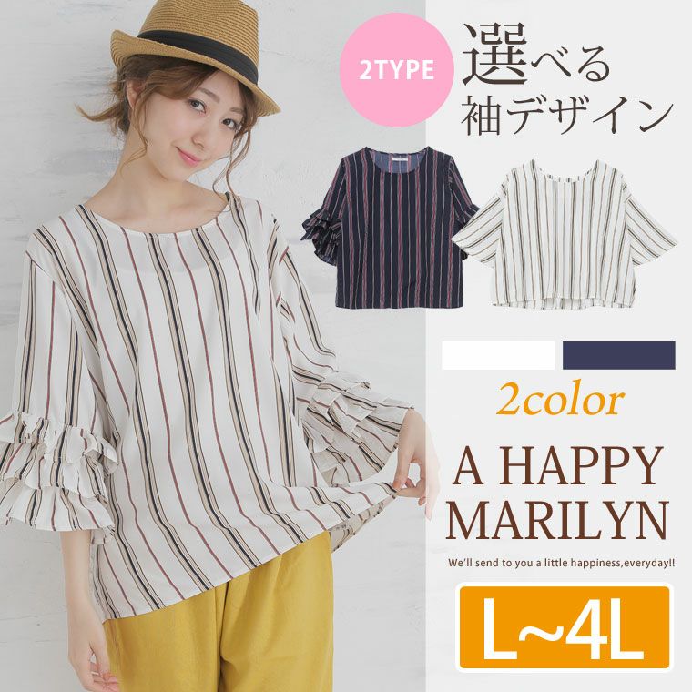 他の画像を見る トップス シャツ LL 3L 4L 夏 夏物 夏服 夏用 ゆったり かわいい 袖コンシャス 2typeから選べる!! マルチストライプ 九分袖 ブラウス【メール便可1】 | 大きいサイズの通販ならハッピーマリリン 価格 ¥ 3,289 税込 在庫切れ お気に入りに登録する