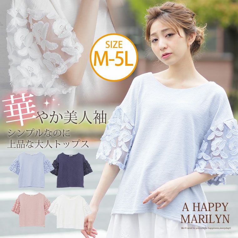 他の画像を見る LL 3L 4L 5L 夏 夏物 夏服 夏用 袖デザイン 花柄 ゆったり かわいい おしゃれ お洒落 可愛い 大人 きれいめ 上品 ぽっちゃり ガーリー ビッグサイズ 着痩せ 着やせ 袖コンシャス 袖花刺繍 レース 六分袖 プルオーバー | 大きいサイズの通販ならハッピーマリリン 価格 ¥ 1,969 税込 在庫切れ お気に入りに登録する