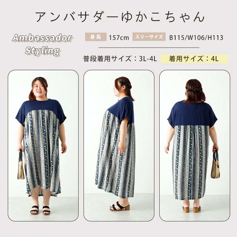 他の画像を見る ワンピ デザインワンピ LL 3L 4L 5L 6L 夏 夏物 夏服 夏用 ぽっちゃり ゆったり プラスサイズ 柄ワンピ インド フロムインディア お腹 お尻 二の腕カバー 【FROM INDIA】 切替 レーヨン プリント ワンピース | 大きいサイズの通販ならハッピーマリリン 価格 ¥ 3,990 税込 4.67 お気に入りに登録する