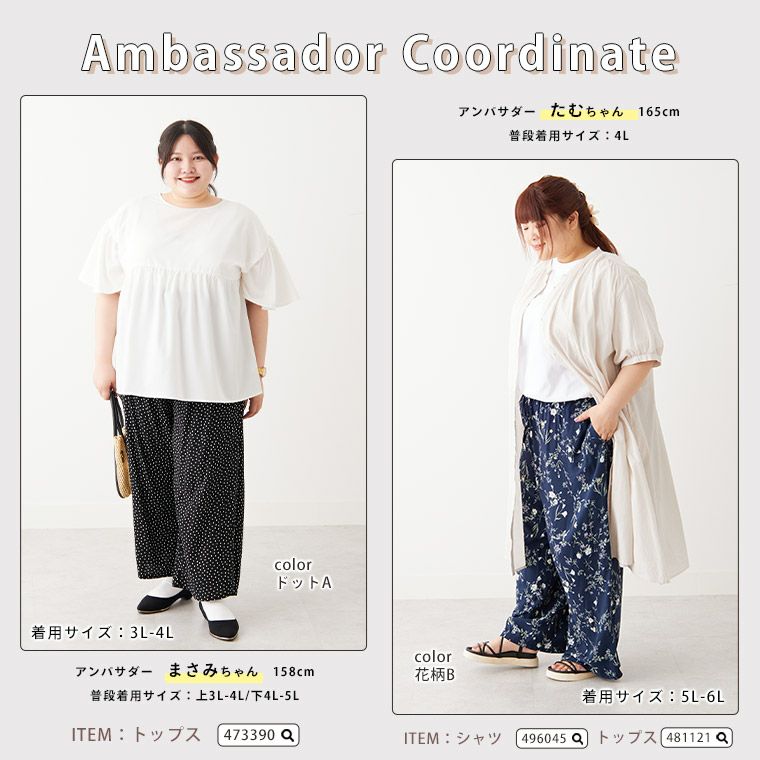 他の画像を見る ボトムス イージーパンツ LL 3L 4L 5L 夏 夏物 夏服 夏用 ぽっちゃり ゆったり プラスサイズ かわいい おしゃれ カジュアル 接触冷感 さらっと着られる!! 豊富な柄から選べる ワイドパンツ【ストレッチ】【ウェストゴム】 | 大きいサイズの通販ならハッピーマリリン 価格 ¥ 2,990 税込 5.00 お気に入りに登録する