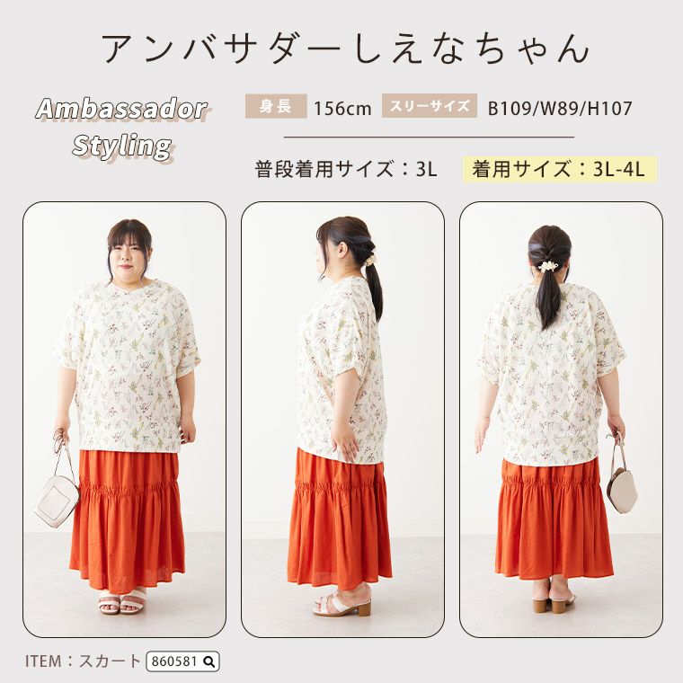 他の画像を見る ブラウス シャツ トップス LL 3L 4L 5L 6L 半袖 夏 夏物 夏服 夏用 ぽっちゃり ゆったり プラスサイズ かわいい おしゃれ カジュアル ナチュラル お腹 二の腕カバー 梨地 裾タック プルオーバー ブラウス | 大きいサイズの通販ならハッピーマリリン 価格 ¥ 3,190 税込 4.00 お気に入りに登録する