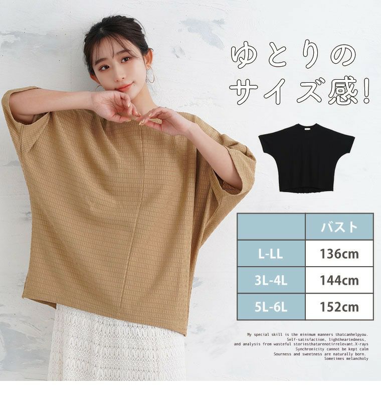 他の画像を見る カットソー LL 3L 4L 5L 6L 7L 8L 半袖 五分袖 夏 夏物 夏服 夏用 ぽっちゃり ゆったり お腹 可愛いも着やすいも我慢しない! さらりと着映える ゆるっと楽ちん カット楊柳 Tシャツ | 大きいサイズの通販ならハッピーマリリン 価格 ¥ 2,190 税込 4.00 お気に入りに登録する
