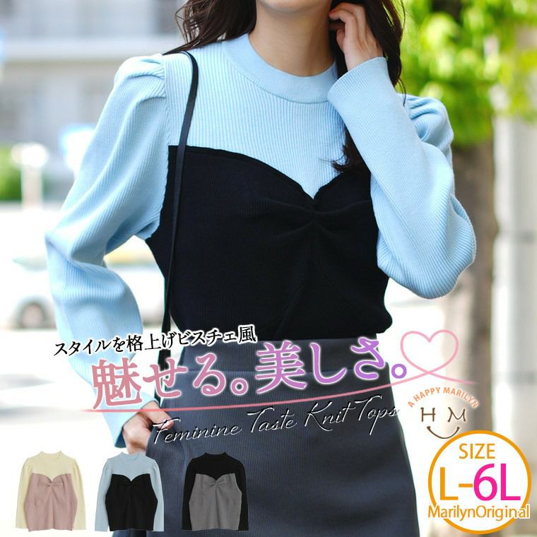 他の画像を見る オリジナル トップス ニット セーター プルオーバー LL 3L 4L 5L 6L 秋 冬 PBT レイヤード ぽっちゃり ゆったり 春 ラク可愛 無敵トップスシリーズ ビスチェ風 プチハイ ニットトップス | 大きいサイズの通販ならハッピーマリリン 価格 ¥ 2,990 税込 4.67 お気に入りに登録する