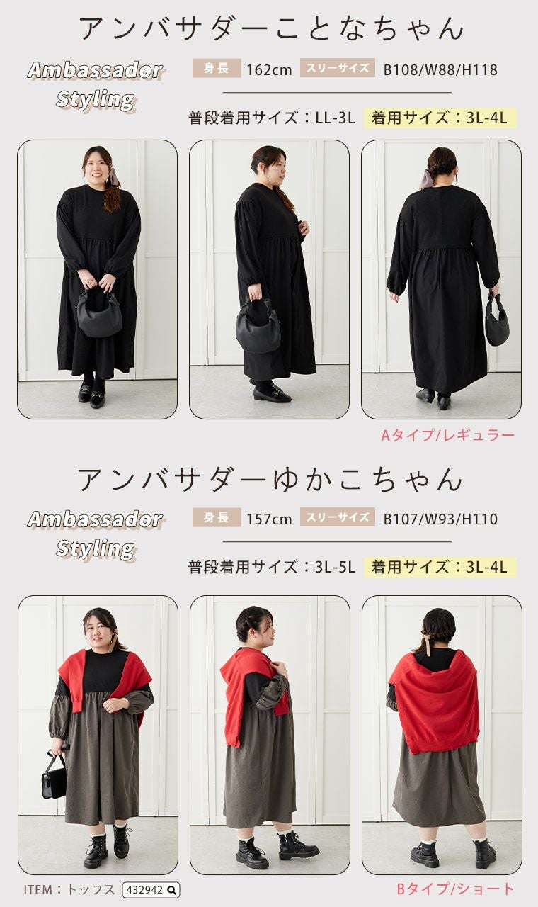 他の画像を見る オリジナル ワンピ デザインワンピ LL 3L 4L 5L 6L 長袖 冬 冬物 冬服 ぽっちゃり 考えずに完成♪ タイプ別で選べる レイヤード風 ドッキングワンピース | 大きいサイズの通販ならハッピーマリリン 小柄さん丈有 在庫特価 定価 ¥ 3,790 のところ 価格 ¥ 3,000 税込 4.13 お気に入りに登録する