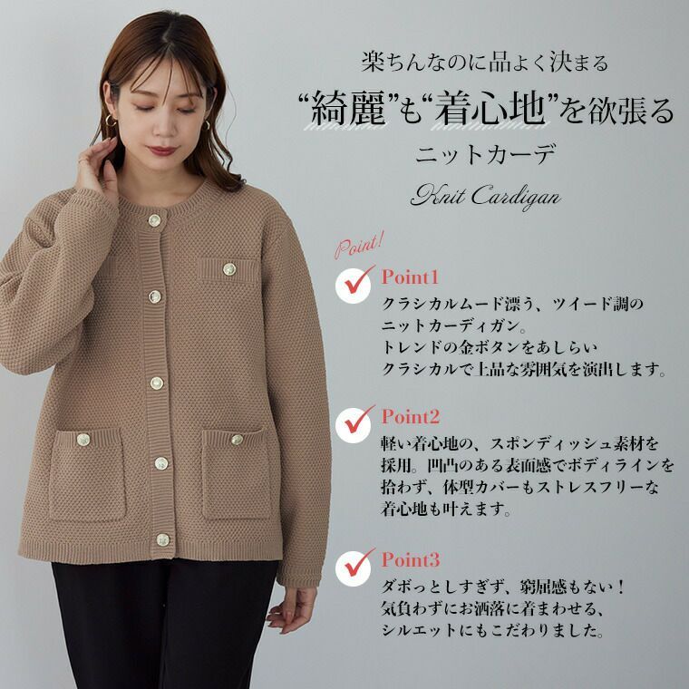 他の画像を見る オリジナル トップス カーデ 羽織り LL 3L 4L 5L 6L 秋 秋物 秋冬 ぽっちゃり ゆったり リン きれいめ 上品 プラスサイズ Rin カノコ編みで叶う 綺麗×着心地にこだわった スポンディッシュ ニット カーデ | 大きいサイズの通販ならハッピーマリリン 在庫特価 定価 ¥ 3,990 のところ 価格 ¥ 3,000 税込 3.86 お気に入りに登録する