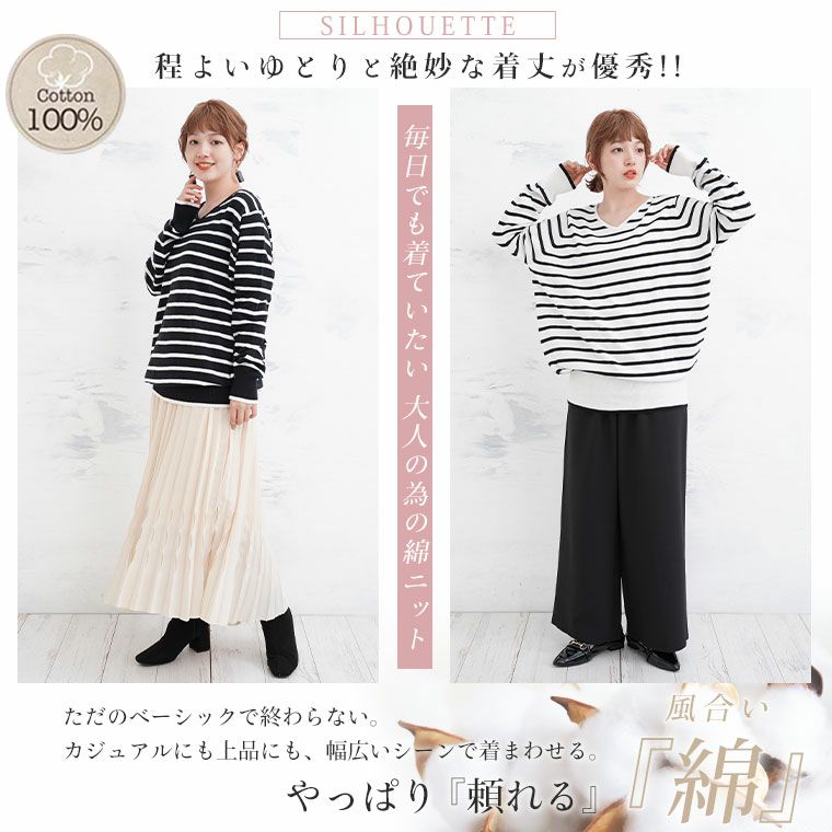 他の画像を見る 綿ニット LL 3L 4L 5L 秋 秋物 秋冬 ぽっちゃり ゆったり コットン 綿 ボーダー シンプル 定番 セーター おしゃれ カジュアル ナチュラル プラスサイズ ロングシーズン コットン Vネック ボーダーニット | 大きいサイズの通販ならハッピーマリリン 在庫特価 定価 ¥ 3,490 のところ 価格 ¥ 2,500 税込 4.40 お気に入りに登録する