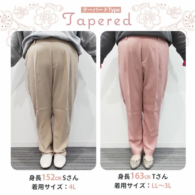 他の画像を見る ボトムス LL 3L 4L 5L 6L 春 夏 リニューアル!! Rin 低身長さん高身長さん対応 私サイズで綺麗が叶う選べる身長別 スラっと美脚 ストレッチ テーパードパンツ | 大きいサイズの通販ならハッピーマリリン HIT100 SALE 小柄さん丈有 定価 ¥ 2,790 のところ 価格 ¥ 1,980 税込 3.96 お気に入りに登録する