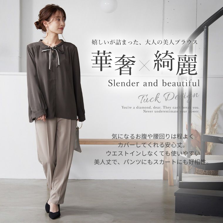 他の画像を見る オリジナル シャツ トップス LL 3L 4L 5L 6L 秋 秋物 秋冬 ぽっちゃり ゆったり お腹 胸周り 二の腕カバー お尻 腰周り 長袖 ナチュラル プラスサイズ 春 後ろ姿美人 スッキリギャザーの美人 スキッパーブラウス | 大きいサイズの通販ならハッピーマリリン 在庫特価 定価 ¥ 3,990 のところ 価格 ¥ 3,000 税込 4.10 お気に入りに登録する