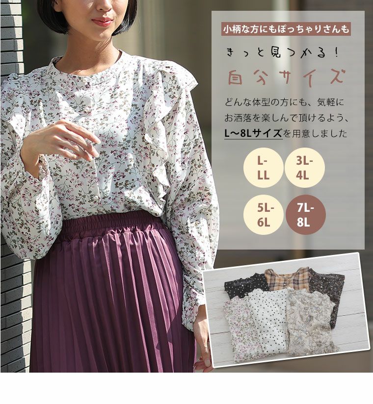 他の画像を見る オリジナル シャツ トップス LL 3L 4L 5L 6L 7L 8L 秋 秋物 秋冬 ぽっちゃり ゆったり かわいい おしゃれ カジュアル ナチュラル プラスサイズ きれいめ ドット チェック 花柄 線画 春 肩フリル フェミニン ブラウス | 大きいサイズの通販ならハッピーマリリン lafarfa掲載 価格 ¥ 2,990 税込 4.35 お気に入りに登録する