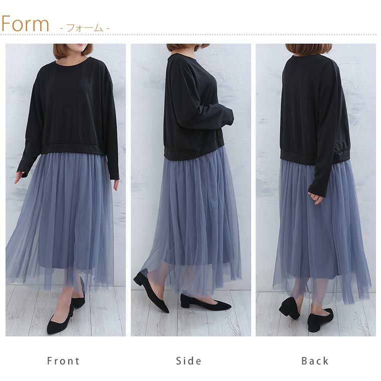 他の画像を見る オリジナル ワンピ デザインワンピ LL 3L 4L 5L 6L 秋 秋物 秋冬 ぽっちゃり ゆったり かわいい おしゃれ カジュアル ナチュラル プラスサイズ 太もも お尻 春 ゆるっと着られる チュールスカート ドッキングワンピース | 大きいサイズの通販ならハッピーマリリン 価格 ¥ 4,990 税込 3.60 お気に入りに登録する