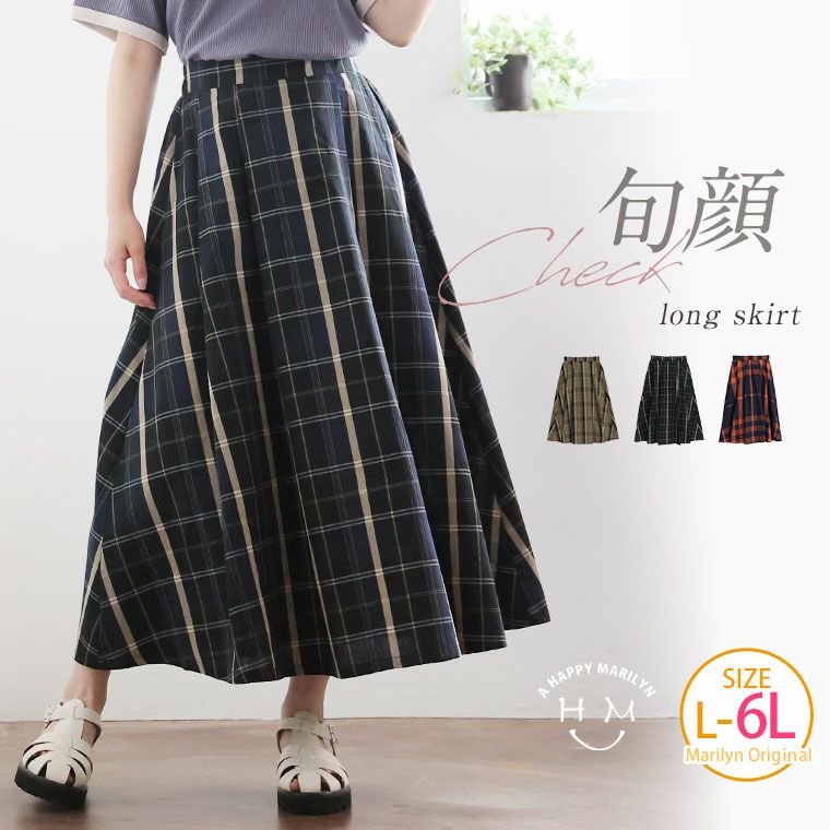 他の画像を見る オリジナル ボトムス マキシスカート LL 3L 4L 5L 6L 秋 秋冬 ぽっちゃり ゆったり お腹 太もも お尻 腰周り プラスサイズ 春 リニューアル!!のこなれ感 美フレア ビッグチェック ロングスカート | 大きいサイズの通販ならハッピーマリリン 価格 ¥ 3,790 税込 3.67 お気に入りに登録する