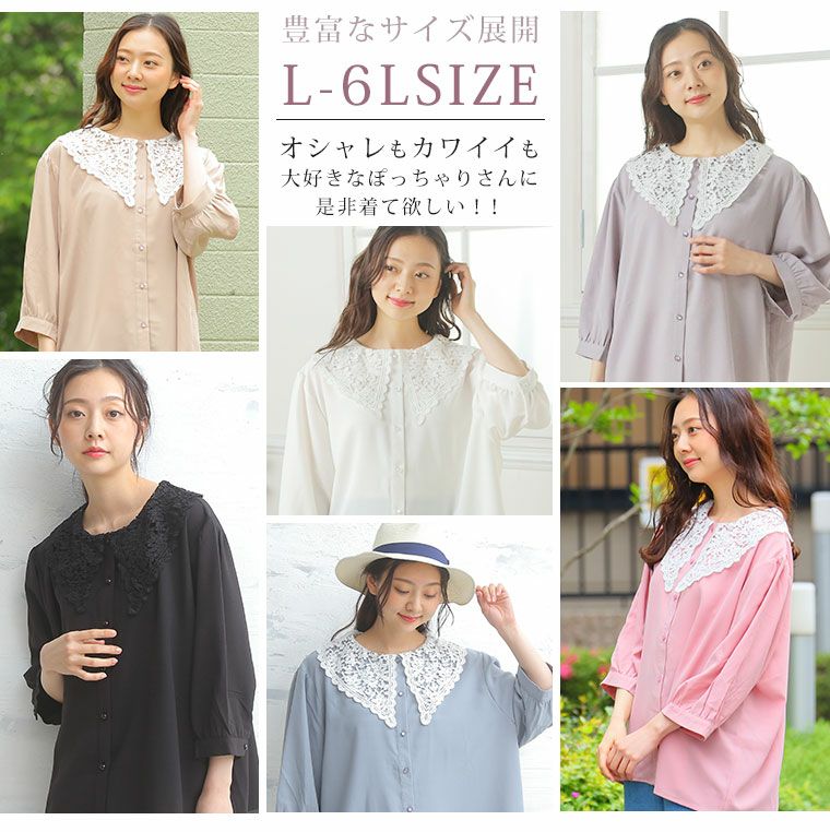 他の画像を見る オリジナル シャツ トップス LL 3L 4L 5L 6L 夏 夏物 夏服 夏用 ぽっちゃり ゆったり かわいい おしゃれ カジュアル ナチュラル ビッグカラー 大きい襟 レース ビッグ襟 レトロ ガーリー 六分袖 ブラウス | 大きいサイズの通販ならハッピーマリリン 在庫特価 定価 ¥ 3,290 のところ 価格 ¥ 999 税込 4.40 お気に入りに登録する