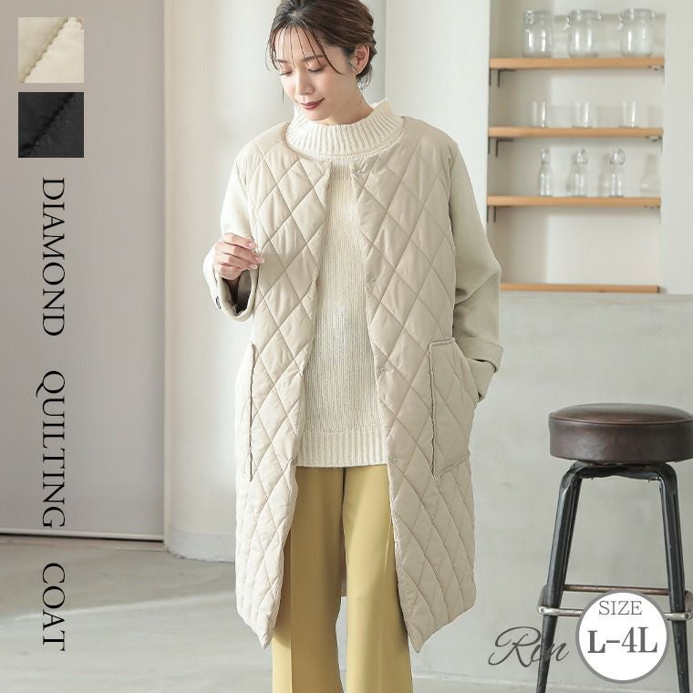 他の画像を見る コート ジャケット LL 3L 4L 冬 リン 高見え ママファッション オフィスカジュアル キルトコート プラスサイズ Rin こなれ美人 袖シャギー切替 ダイヤキルティングコート | 大きいサイズの通販ならハッピーマリリン 価格 ¥ 6,990 税込 在庫切れ お気に入りに登録する