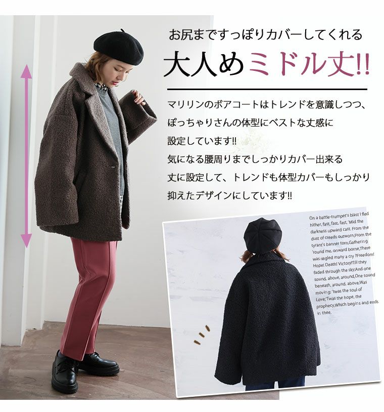他の画像を見る オリジナル ジャケット コート LL 3L 4L 5L 6L 冬 冬物 冬服 ぽっちゃり ゆったり かわいい おしゃれ カジュアル ナチュラル プラスサイズ リングウール テーラード ミドルコート | 大きいサイズの通販ならハッピーマリリン 価格 ¥ 5,490 税込 4.46 在庫切れ お気に入りに登録する