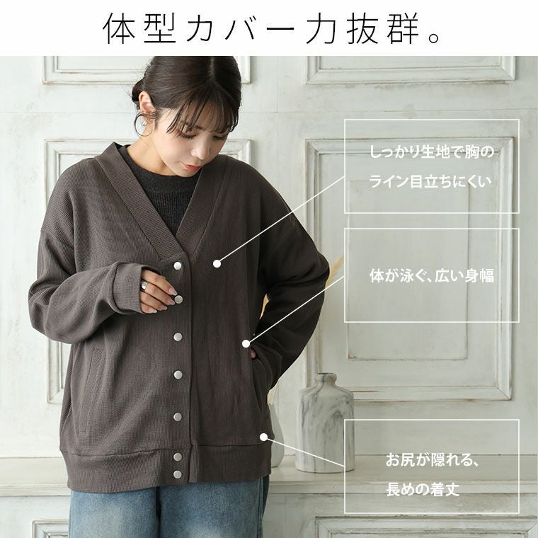 他の画像を見る トップス 羽織り LL 3L 4L 5L 6L 7L 8L 長袖 秋 秋物 秋服 冬 冬物 冬服 ぽっちゃり ゆったり プラスサイズ 呼吸するコットン100% 楽のび ワッフルシリーズ ゆるカーディガン | 大きいサイズの通販ならハッピーマリリン 価格 ¥ 3,490 税込 4.00 お気に入りに登録する