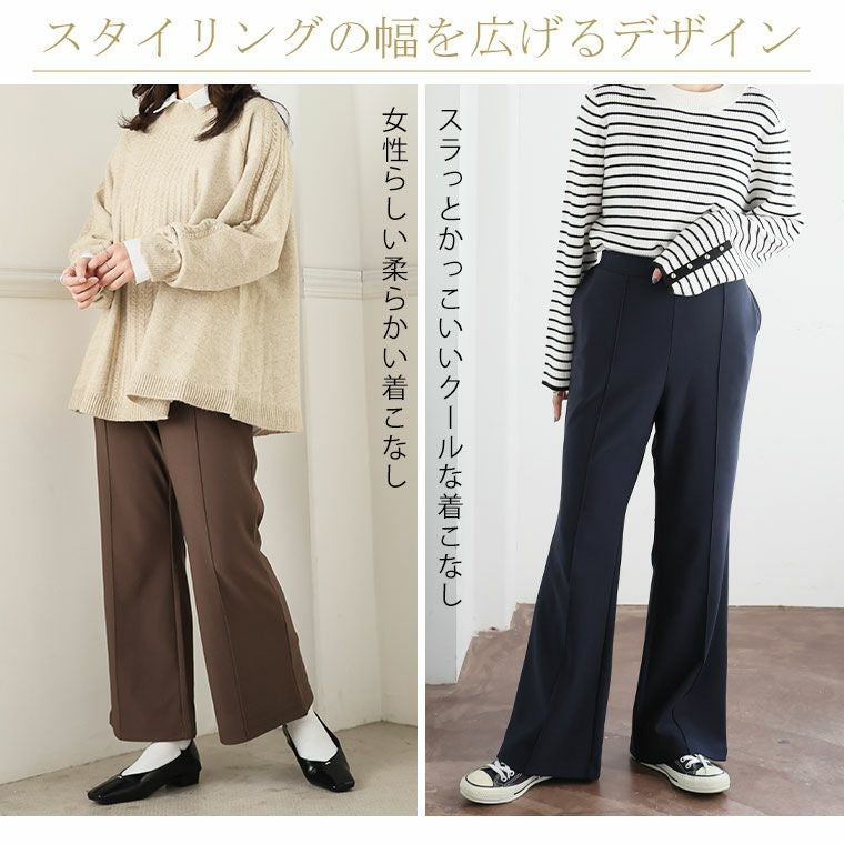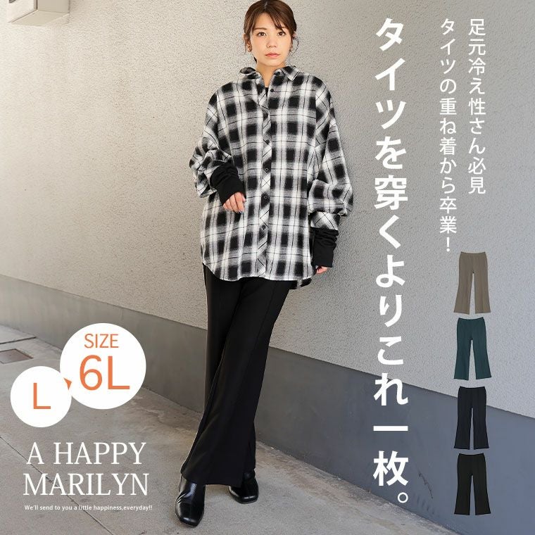 他の画像を見る ボトムス フレア LL 3L 4L 5L 6L 秋 秋物 秋服 冬 冬物 冬服 ぽっちゃり ゆったり プラスサイズ あったか タイツいらずで下半身ぽかぽか! 2丈から選べる 美脚 セミフレアパンツ 【ウェストゴム】 【ストレッチ】 | 大きいサイズの通販ならハッピーマリリン 価格 ¥ 2,790 税込 4.44 お気に入りに登録する