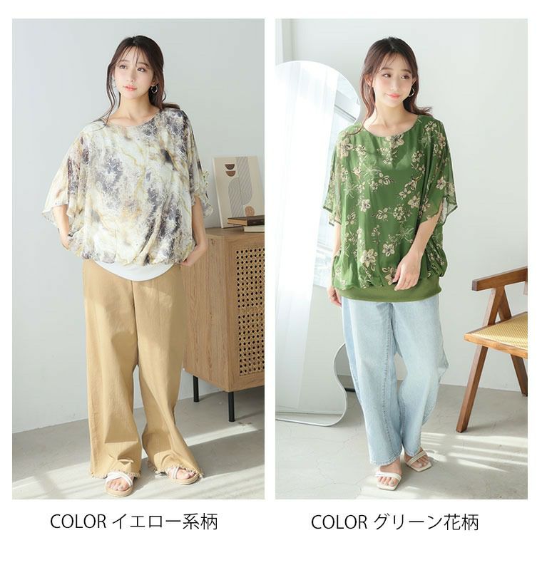 他の画像を見る トップス LL 3L 4L 夏 夏物 夏服 秋 秋物 秋冬 ぽっちゃり ゆったり プラスサイズ かわいい ドルマン イージーケア UVカット お腹 お尻 二の腕カバー 【Pastel Leaf】 ジョーゼット切替 フード付き チュニック | 大きいサイズの通販ならハッピーマリリン 価格 ¥ 3,490 税込 4.00 お気に入りに登録する