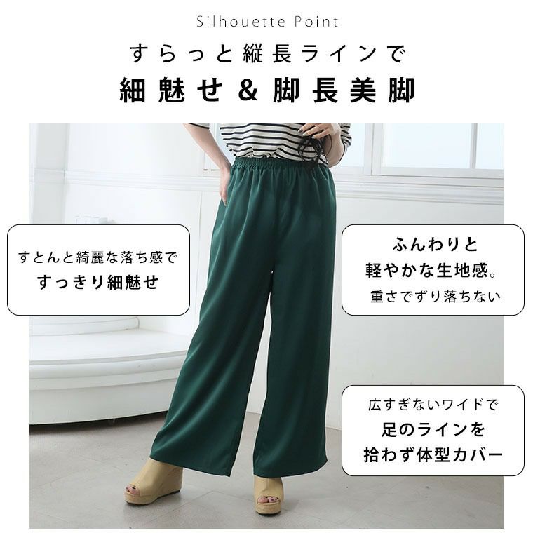 ボトムス ワイドパンツ LL 3L 4L 5L 6L 夏 夏物 夏服 夏用 ぽっちゃり ゆったり プラスサイズ お腹 太もも 胸周り お尻 腰周り 接触冷感 楽してひんやり! お腹魅せ 接触冷感 ウエストシャーリング ワイドパンツ【ウェストゴム】【ストレッチ】 | 大きいサイズの通販ならハッピーマリリン