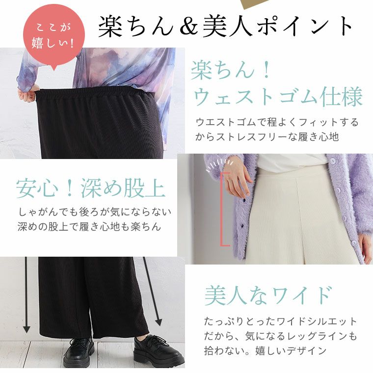 ボトムス LL 3L 4L 5L 6L 秋 秋物 秋冬 ぽっちゃり ゆったり お尻 腰周り しわがつかない イージーパンツ カジュアル ナチュラル プラスサイズ ストレッチ フクレジャガード 着回し力抜群 ワイドパンツ【ストレッチ】【ウェストゴム】 | 大きいサイズの通販ならハッピーマリリン