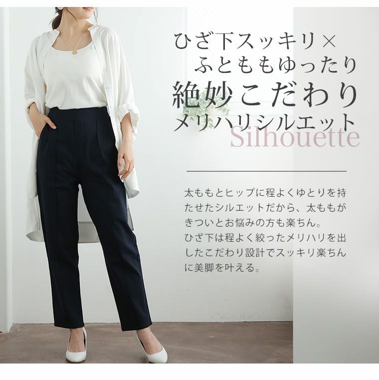 オリジナル ボトムス LL 3L 4L 5L 6L 春 春物 春服 ぽっちゃり ゆったり お腹 太もも お尻 腰周り 上品 華やか 高見え エレガント キレカジ プラスサイズ【ストレッチ】【ウェストゴム】 Rin スラっと脚長 美脚シルエット ストレッチ テーパードパンツ | 大きいサイズの通販ならハッピーマリリン