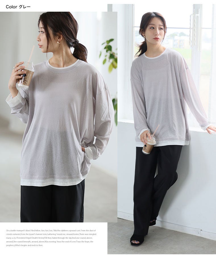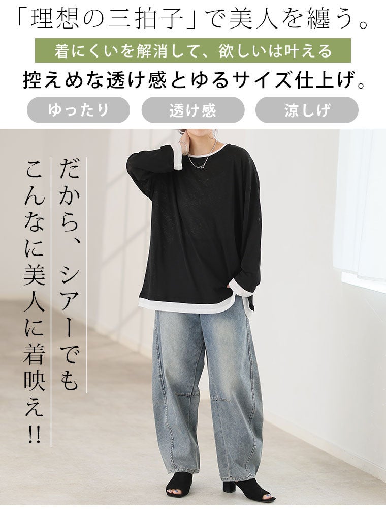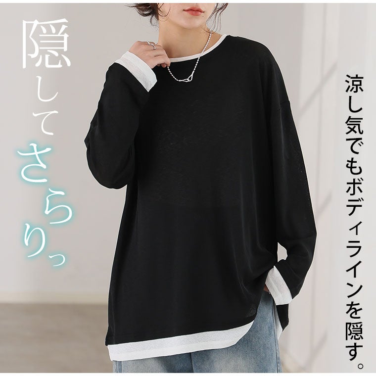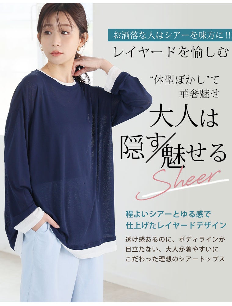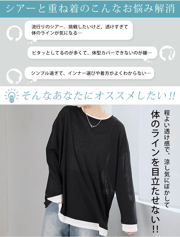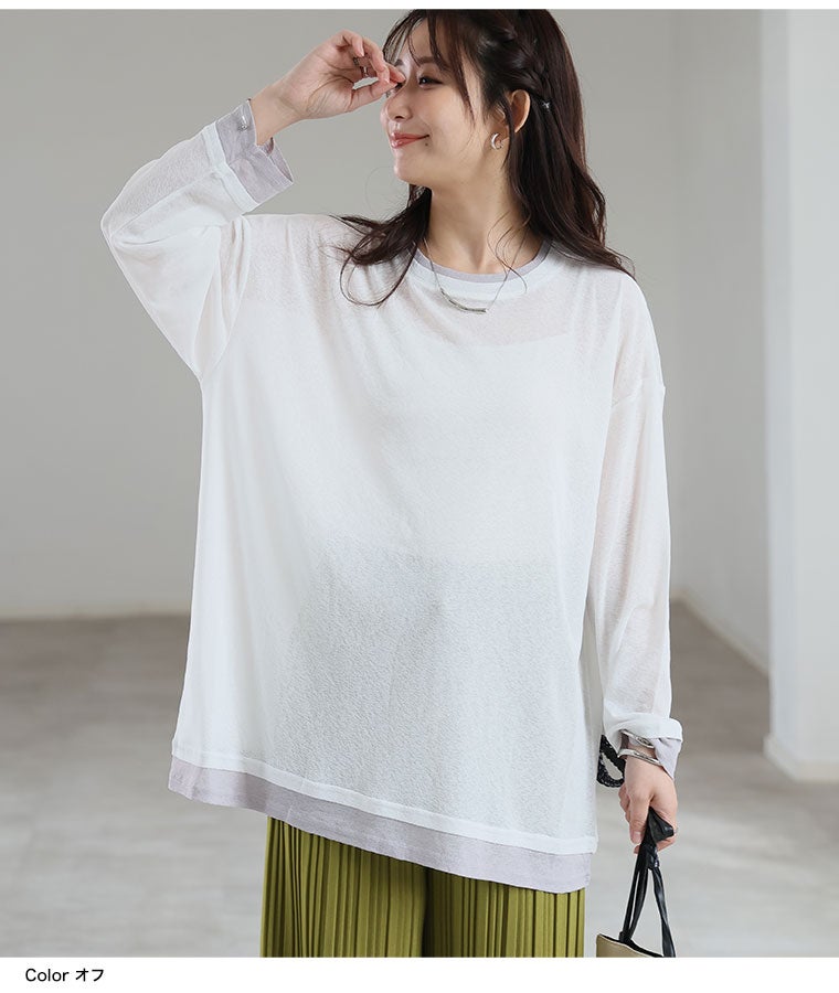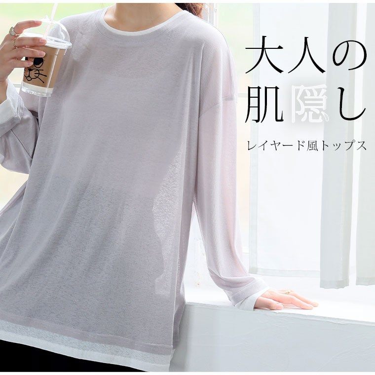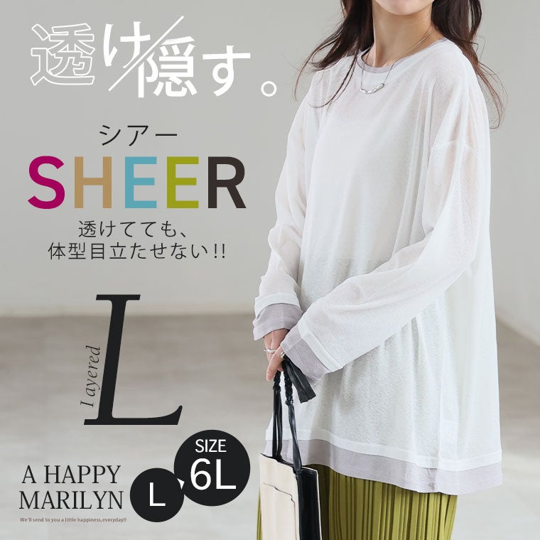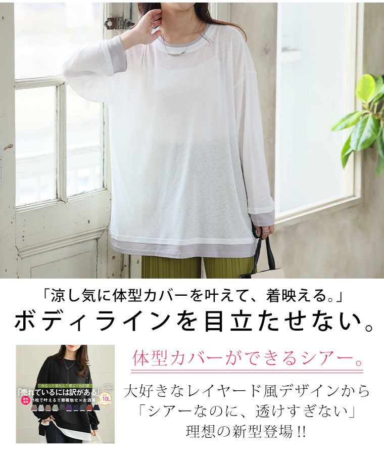 カットソー シアートップス LL 3L 4L 5L 6L 7L 8L 長袖 春 春物 春服 夏 夏物 夏服 秋 ぽっちゃり ゆったり プラスサイズ レイヤード 重ね着 お腹 二の腕カバー シースルー ロンT 涼/軽/体型カバー スラブ シアー プルオーバー | 大きいサイズの通販ならハッピーマリリン