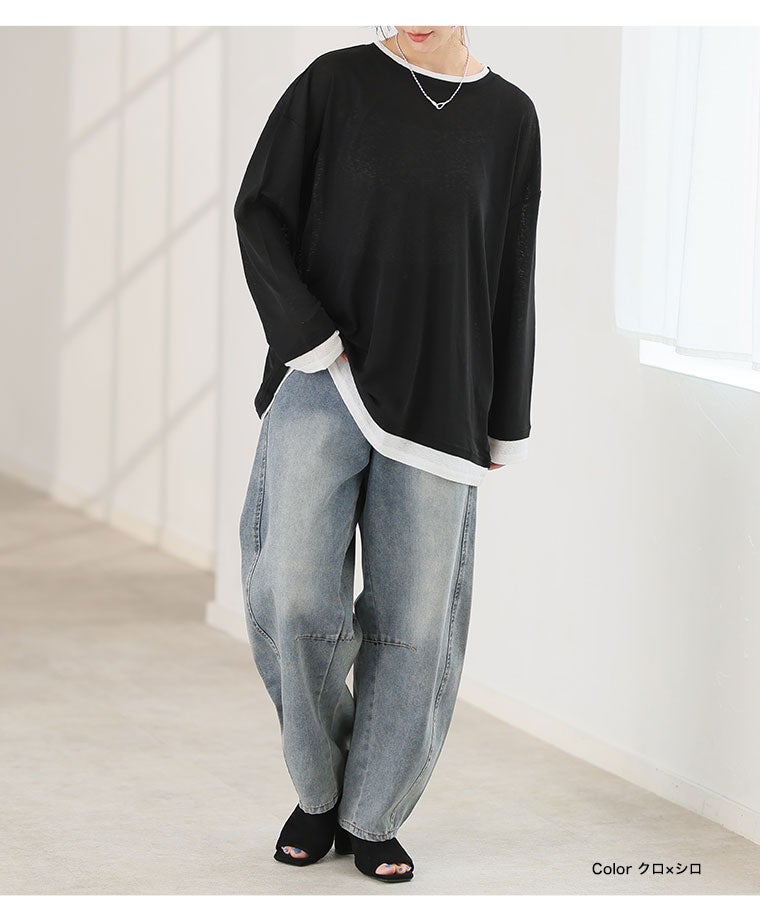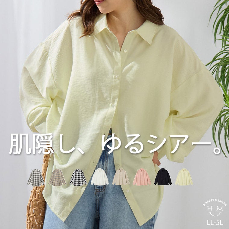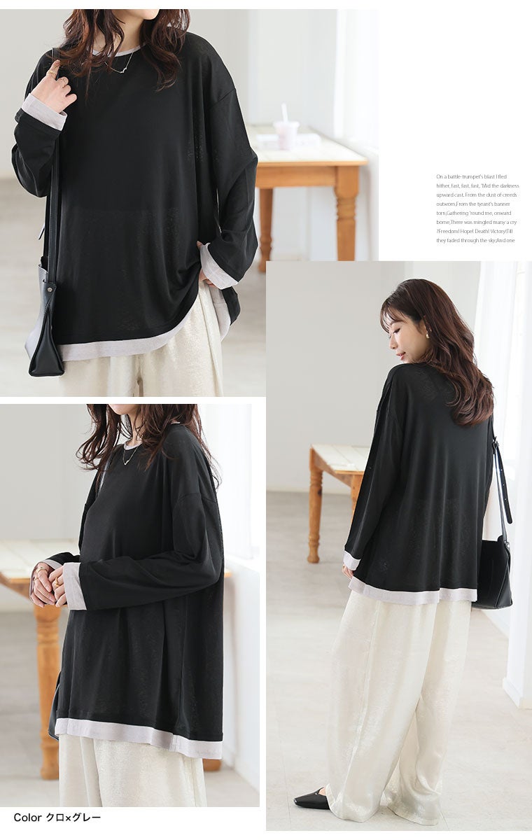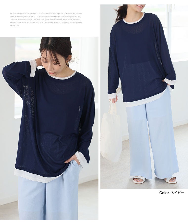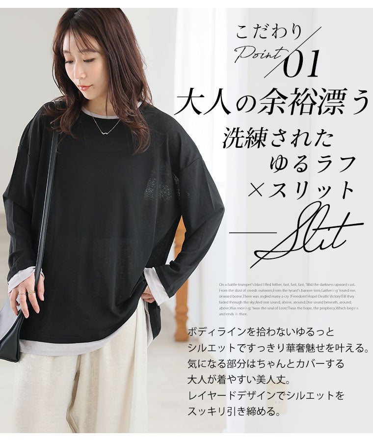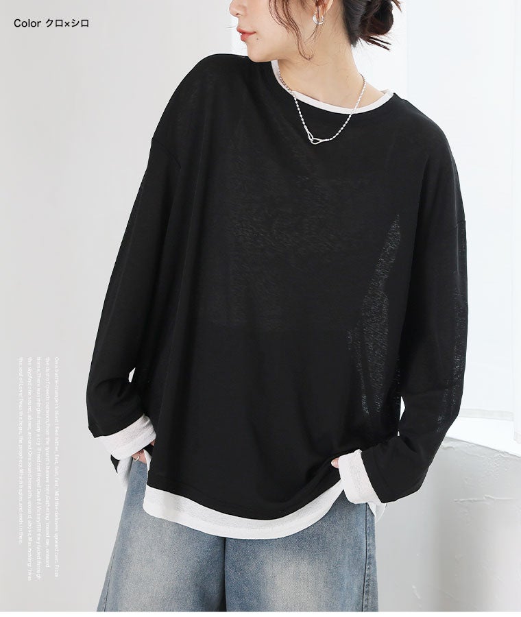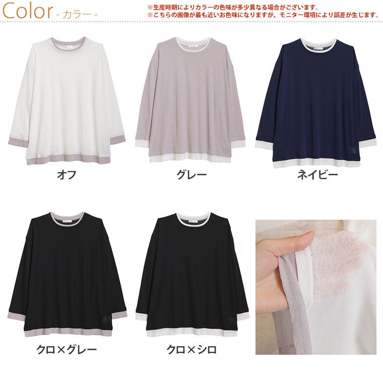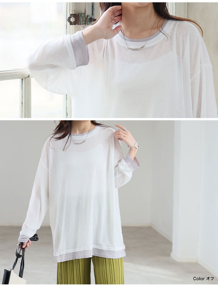 カットソー シアートップス LL 3L 4L 5L 6L 7L 8L 長袖 春 春物 春服 夏 夏物 夏服 秋 ぽっちゃり ゆったり プラスサイズ レイヤード 重ね着 お腹 二の腕カバー シースルー ロンT 涼/軽/体型カバー スラブ シアー プルオーバー | 大きいサイズの通販ならハッピーマリリン