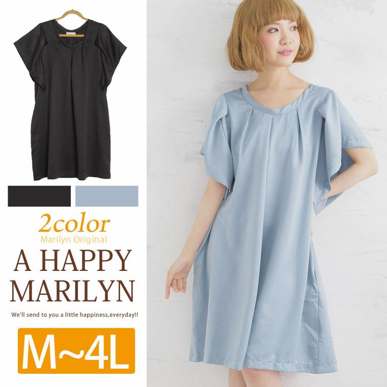 大きいサイズ ドレープスリーブ タック 入り クラシカル ワンピース