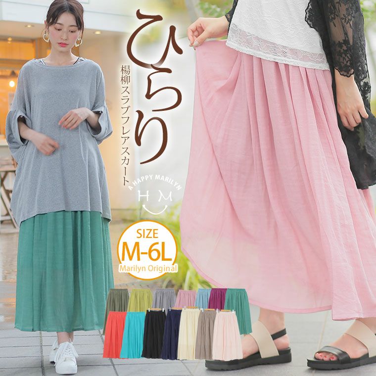大きいサイズ 【オススメ】 新色追加!! 裏地付き 無地 楊柳スラブ 薄感 フレアロング丈スカート